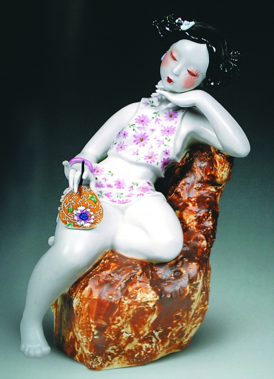 女人花(瓷雕)周 玲作 |