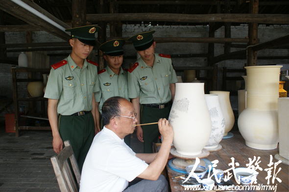 觀摩大師雕瓷。 圖片來(lái)源:人民武警報(bào)